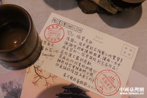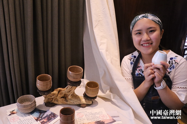 刘晏甄与她的陶瓷手工艺品。(中国台湾网 张露露 摄)