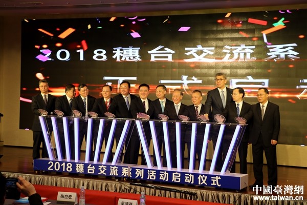 参会领导嘉宾共同启动“2018穗台交流系列活动”。(中国台湾网 李奕均 摄)
