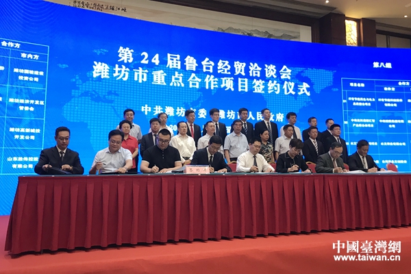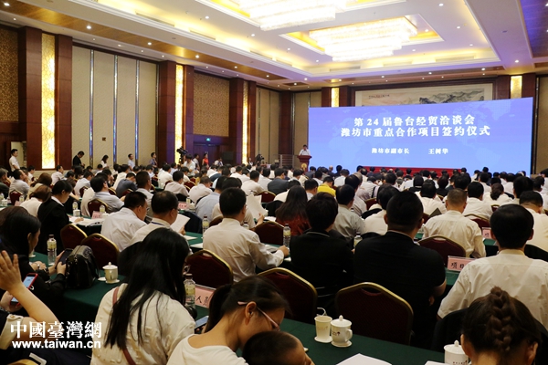 第24届鲁台经贸洽谈会潍坊市重点合作项目签约仪式现场。(中国台湾网 赵苗青 摄)