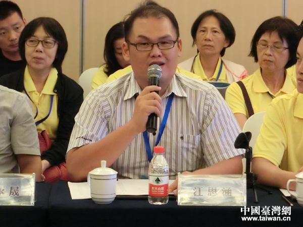 台湾南投县青工总会副总会长刘弋贤发言(中国台湾网 王文英 摄)