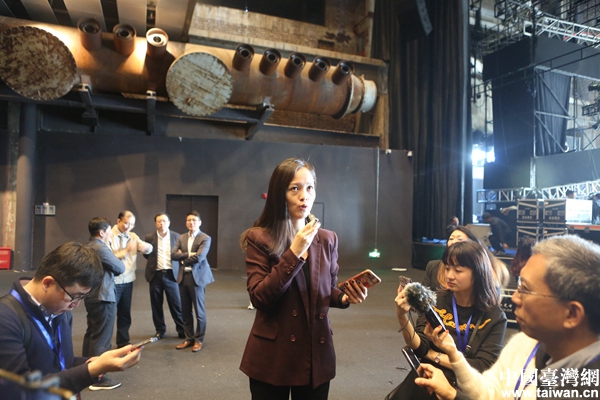 保利尚悦湾剧院管理有限公司总经理介绍相关情况。(中国台湾网 陈佳慧 摄)