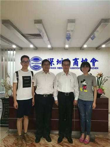 记者采访深圳台商协会会长陈忠和(右二)、秘书长卢政群(左二)
