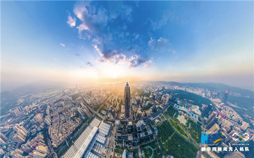 航拍高耸入云的平安金融中心,它与繁华的深圳福田中心区相得益彰。(新华网 刘东林 摄)