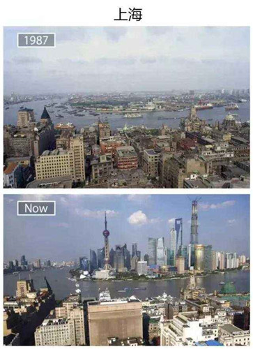 网上盛传的上海今夕对比照片,因发展变化之大曾在朋友圈刷屏。