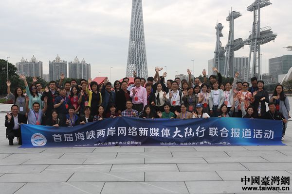 两岸媒体人在广州天和中央商务区合影。(中国台湾网 陈佳慧 摄)