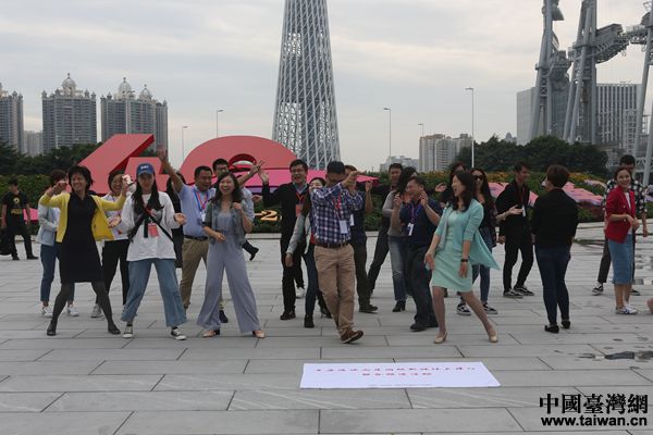 两岸媒体人在广州天和中央商务区快闪。中国台湾网 陈佳慧 摄)