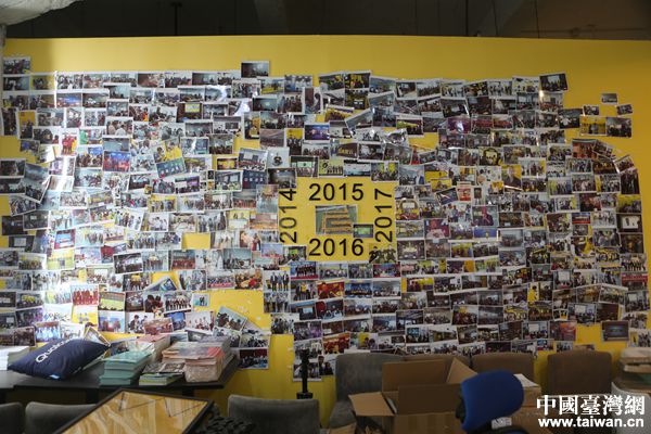 海峡两岸青年就业创业基地众创五号空间照片墙。(中国台湾网 陈佳慧 摄)