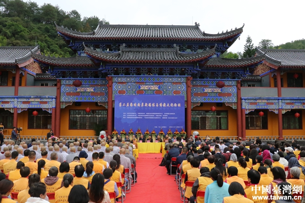 “第二届海峡两岸新媒体与佛教文化论坛”开幕式在东华禅寺书画院广场举行。(中国台湾网 李奕均 摄)
