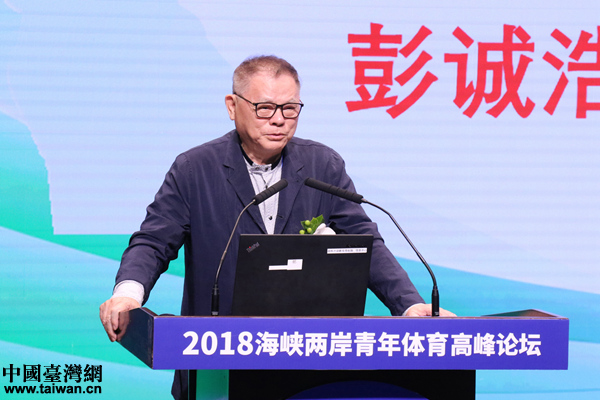 海峡两岸棒球交流合作委员会名誉主席彭诚浩出席论坛并致辞。(中国台湾网 尹赛楠 摄)