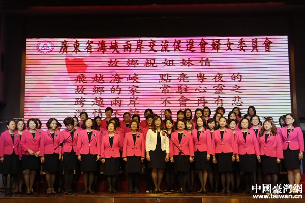 “飞越海峡,点亮粤夜之光。故乡的家,常驻心灵之窗。跨越两岸,不会再有悲伤。故乡亲,姐妹情,已经走向四方……”活动现场,林佳蓉带领80余位会员代表合唱《故乡亲 姐妹情》,赢得到场嘉宾阵阵热烈掌声。