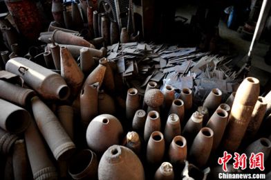 金门居民利用弹壳弹头制造金门菜刀。中新网 王东明 摄