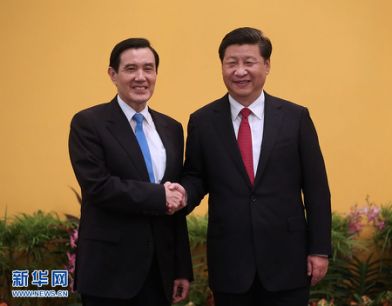 2015年11月7日,两岸领导人会面在新加坡香格里拉大酒店举行。习近平同马英九握手。 新华社记者 兰红光 摄