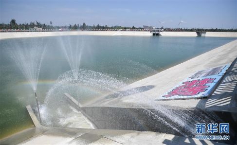 2018年8月5日,来自福建的清水流进金门田埔水库旁的受水池。 新华社记者 薛玉斌 摄