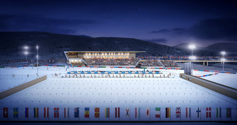 冬季两项中心效果图(赛道已完工)。(图片来源:北京冬奥组委官网)