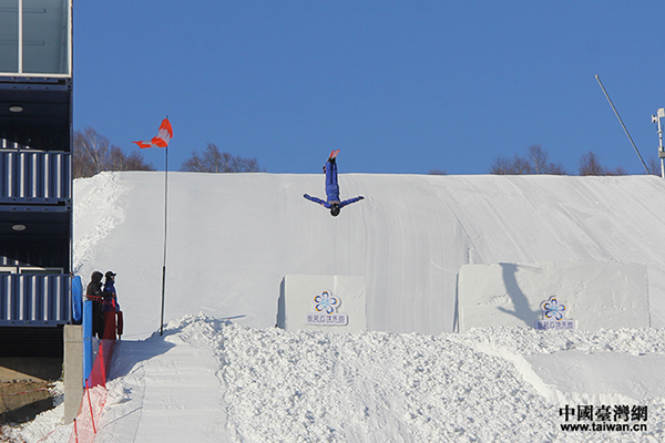 云顶滑雪学校学生正在进行空中技巧训练。(中国台湾网 贾若澜 摄)