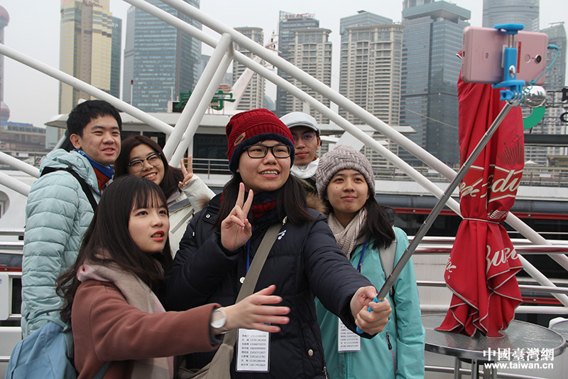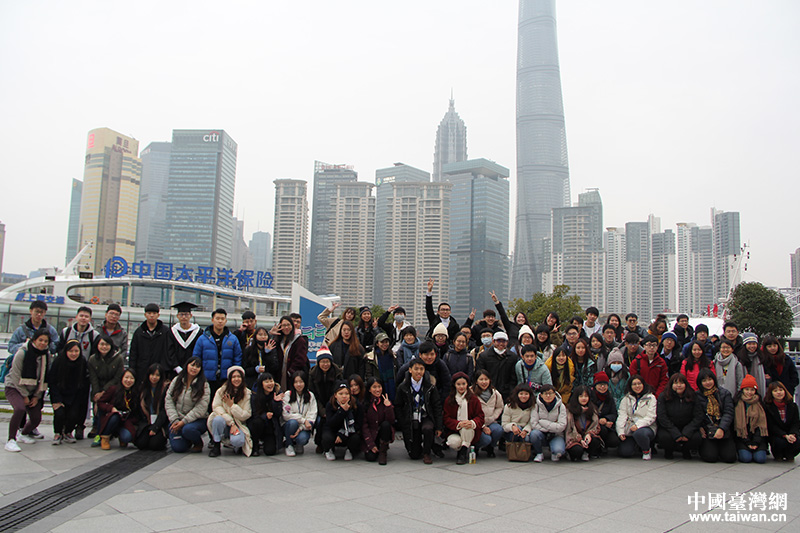 两岸青年在黄浦江畔合影留念。(中国台湾网 王莉婷 摄)