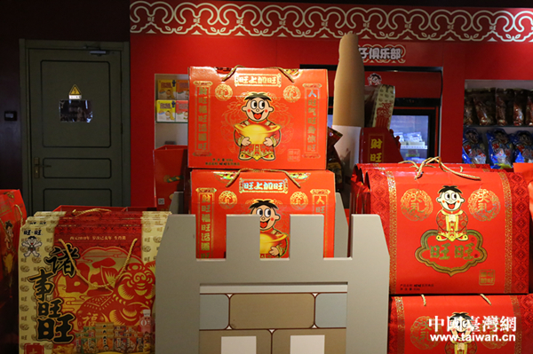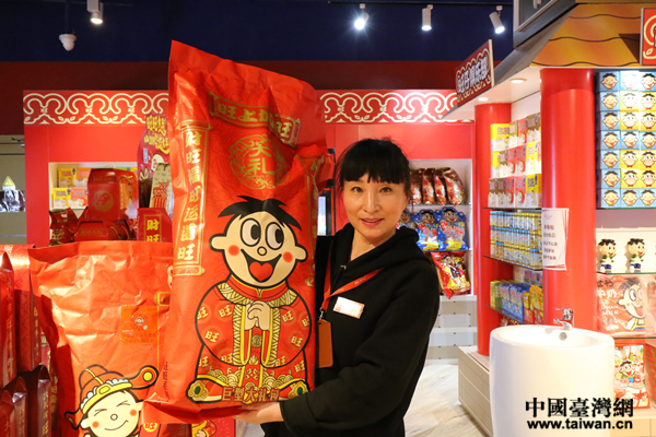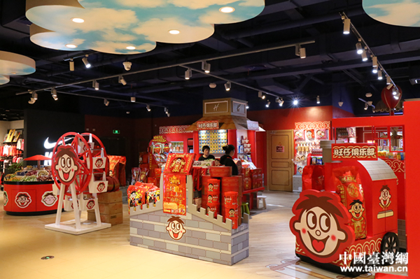 在以“旺仔红”为主色调的旺仔主题门店内,年味扑面而来。(中国台湾网 李宁 摄)