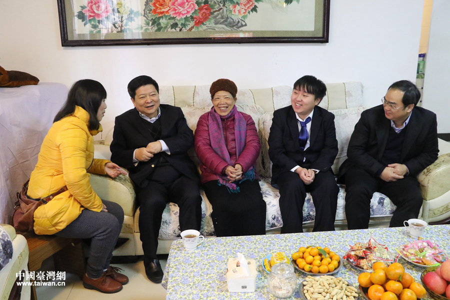 龙明彪看望在湘两岸婚姻家庭。(中国台湾网 高斯斯 摄)