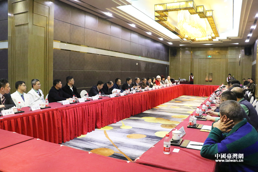 龙明彪与在湘台商、台籍师生、创业台青等代表座谈。(中国台湾网 高斯斯 摄)