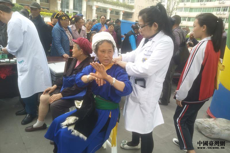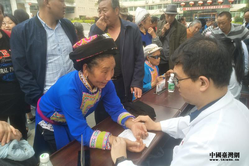 4月26日下午,义诊活动在茂县政府广场举行,有分别来自上海瑞东医院、北京协和医院、复旦大学医学院、苏州慈济医院等全国多地医院的11名台胞医疗专家,提供了以中医为主的健康咨询服务。这支由6位医学博士、3位医学硕士、2位医学学士组成的高层次医疗团队吸引近百名群众前来咨询就诊,活动现场人头攒动,气氛热烈。专家们仔细诊断、耐心解答,同时还为前来咨询的群众检查身体、做中医针灸和推拿按摩,指导他们做好日常生活中的疾病预防和及时治疗。专家们精湛的医术、认真负责的态度以及耐心细致的工作作风,赢得当地百姓的一致好评。