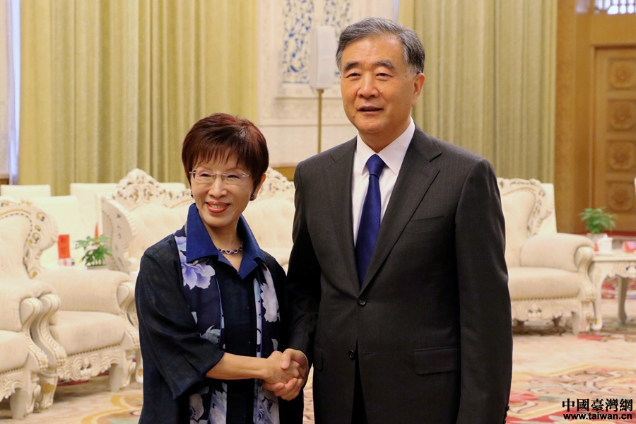 中国台湾网5月13日北京讯 (记者 尹赛楠)中共中央政治局常委、全国政协主席汪洋13日下午在京会见了中国国民党前主席、中华青雁和平教育基金会董事长洪秀柱率领的台湾各界人士代表团。