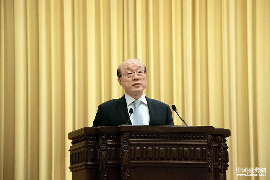中共中央台办、国务院台办主任刘结一在全国台企联会员代表大会暨第四、五届会长交接典礼上讲话。(中国台湾网 张洁 摄)