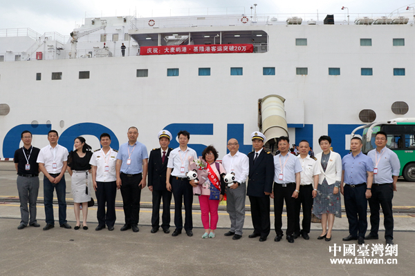 玉环市相关领导参与见证大麦屿港对台海上直航突破20万人次重要时刻。(中国台湾网 普燕 摄)