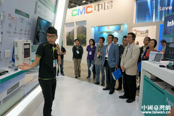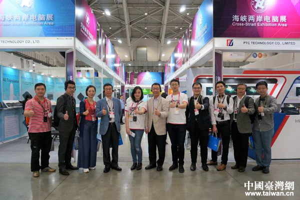 机电商会台北办事处主任李荣民一行参观海峡两岸展区时合影。(中国台湾网发 机电商会台北办事处供图 )
