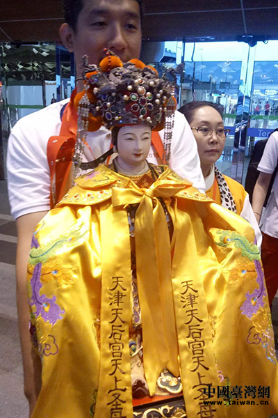 快讯:6月2日下午6时许,由两岸妈祖宫庙人士共同护送的天津天后宫五尊妈祖娘娘搭乘长荣729航班顺利降落在台北桃园机场。