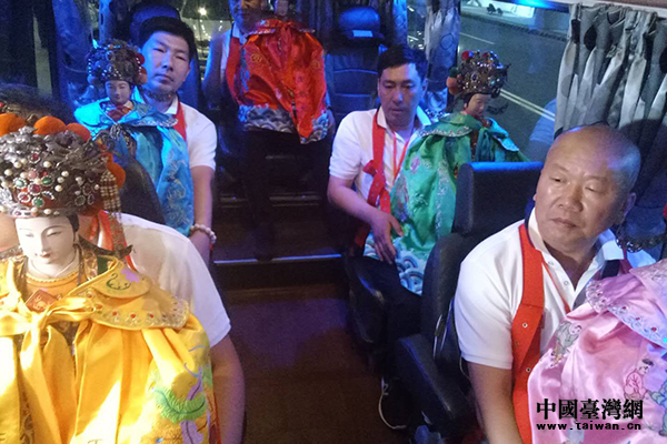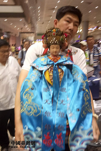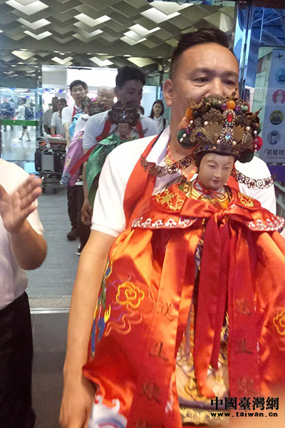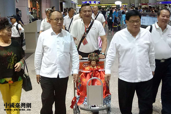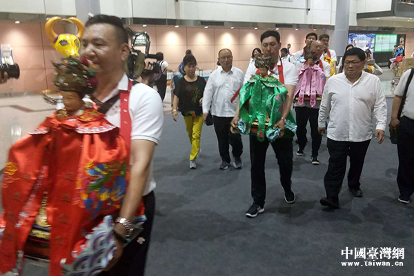 两岸宫庙人士护送妈祖走出机场。(中国台湾网 发)