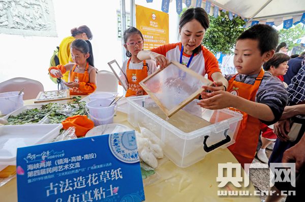 造纸、黏土、包粽子、挂香囊等传统民间技艺吸引小朋友体验(央广网发 章勇涛摄)
