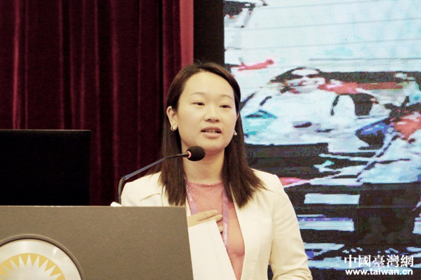 澳门特别行政区立法会议员、澳门妇女联合总会副理事长黄洁贞作分享、交流。(中国台湾网 李奕均 摄)
