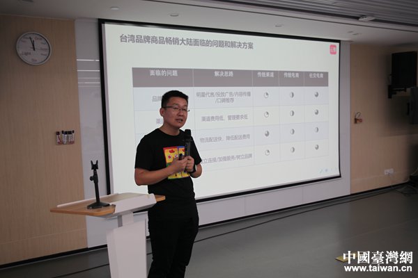 云集高级副总裁张铁成做题为《社交电商助力台湾产品行销大陆》演讲。(中国台湾网 王亮 摄)