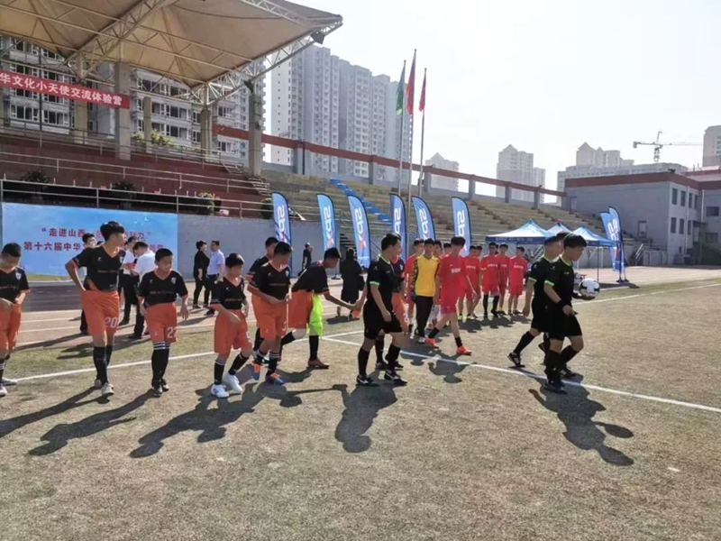开营仪式后,九洲音像副总经理裴超与山西省足协副主席樊卫平一同为比赛开球。台湾桃园市捷豹足球队分别与汾阳中学男队以及汾阳四中女队展开11人制足球比赛的较量。上半场捷豹足球队对阵汾阳中学男队,双方水平相当,场面激烈,打成平手。在下半场与汾阳四中女队的对决中,捷豹足球队获得胜利。比赛结束后,两岸小球员意犹未尽,决定加赛30分钟,充分利用这次宝贵的交流机会互相切磋,共同进步。值得一提的是,捷豹足球队两名年龄仅十一岁的小球员,因为精湛的技术和拼搏的精神吸引了许多现场球迷成为他们的“粉丝”,赛后纷纷前来合影留念。