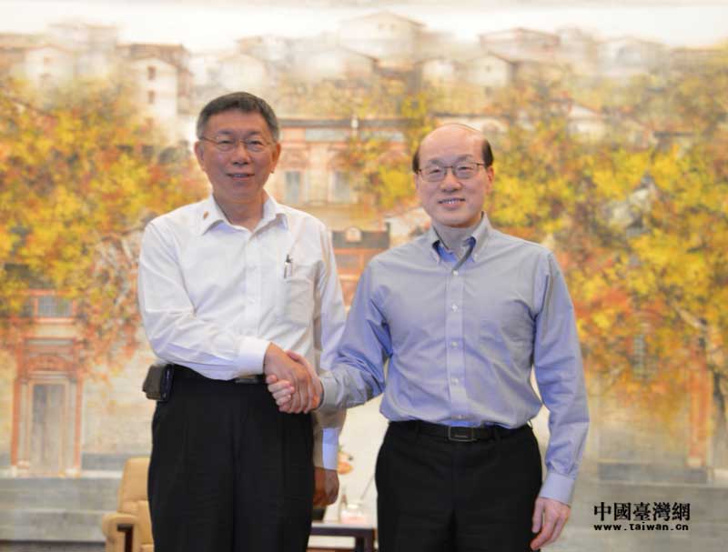 7月5日,刘结一会见台北市长柯文哲一行。(中国台湾网发)