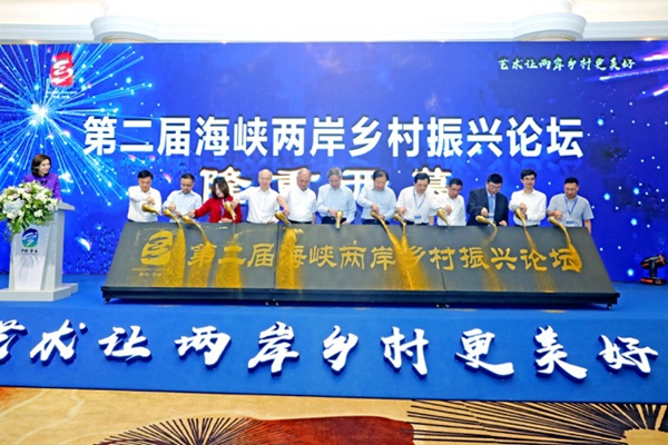 领导、嘉宾共同启动第二届海峡两岸乡村振兴论坛。(李江林 摄)