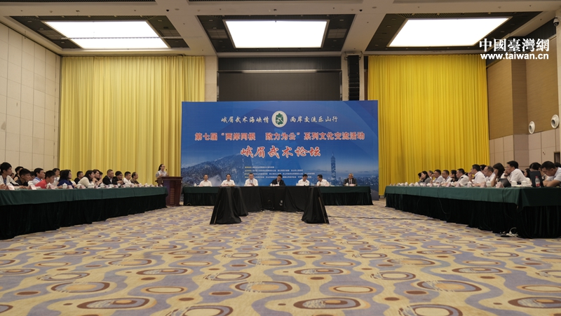 中国台湾网7月18日讯 7月13日下午,第七届“两岸同根 致力为公”系列文化交流活动之峨眉武术论坛在乐山举行。台湾武术界嘉宾,乐山市峨眉武术协会成员,致公党乐山市委党员等150余人参加活动。