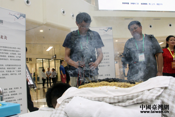 7月22日,2019“海峡两岸记者广西行”联合采访团走进广西国际壮医医院,亲身体验广西壮、瑶等民族医药独特魅力。图为采访团成员在拍摄艾灸。(中国台湾网 王怡然 摄)