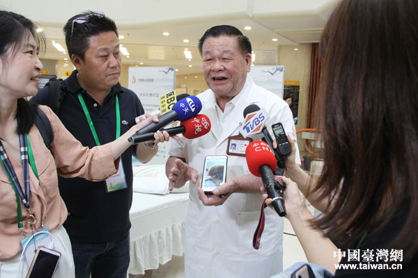 7月22日,2019“海峡两岸记者广西行”联合采访团走进广西国际壮医医院,亲身体验广西壮、瑶等民族医药独特魅力。图为采访团成员接受广西当地媒体采访。(中国台湾网 王怡然 摄)