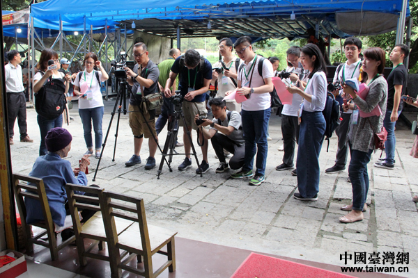 两岸媒体记者在巴马长寿屯采访百岁老人。(中国台湾网 王怡然 摄)