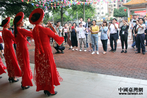 两岸媒体人欣赏京族舞蹈。(中国台湾网 王怡然 摄)