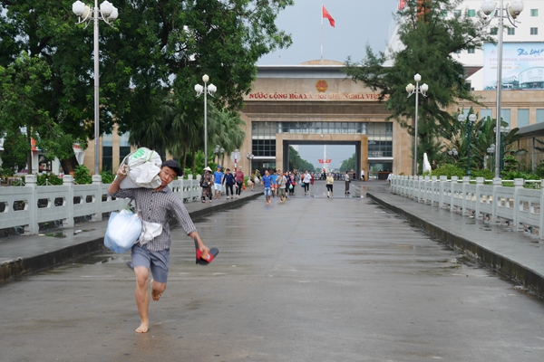 越南边民光脚跑进东兴市。(台湾《旺报》陈君硕供图)