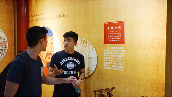 下午,营员们来到了南京云锦博物馆。南京云锦是中国传统的丝制工艺品,是国家首批非物质文化遗产,有“寸锦寸金”之称。而南京云锦博物馆是中国唯一的云锦专业博物馆,馆内展示了云锦织造工艺、明清云锦精品实物,以特殊的浮雕、镶嵌技艺,表达出特殊的审美境界和文化艺术魅力,反映出中华民族特有的文化内涵。南京云锦所需要的特殊工艺,使其一直保留着传统的提花木机织造的传统,必须由两人合作共同操作的高大织机吸引了两岸青年的目光,大家纷纷站在手工织机前观看云锦的织造过程,欣赏着这流传一千六百余年的古老技艺。