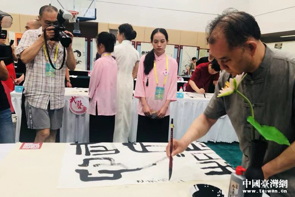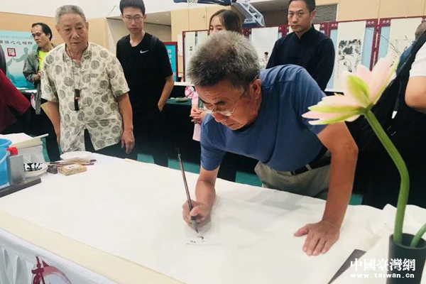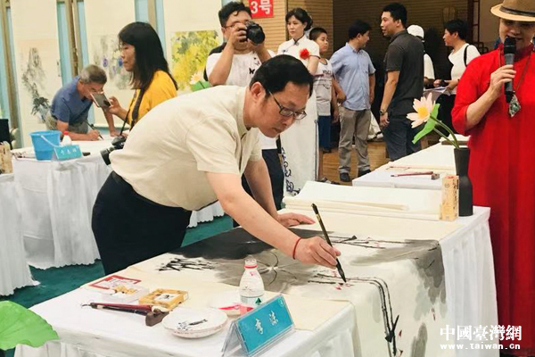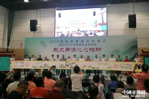 4日下午,两岸武术家、书画家、武术爱好者共计160余人在北京月坛综合训练馆武术文化交流中心参加了盛大的“武艺天下”武术书画摄影交流活动。此次活动的亮点是专门创作的长达12米的“荷和溢美”画卷,由中国职工书法家协会理事、国台办两岸交流中心苗京平及台湾著名收藏家郑宗坤题字,与会所有嘉宾行印留念,成为海峡两岸交流和亲情的印证。