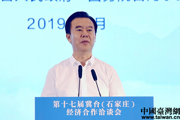 河北省人民政府副省长李谦在开幕式上致辞讲话。(中国台湾网 贾若澜 摄)