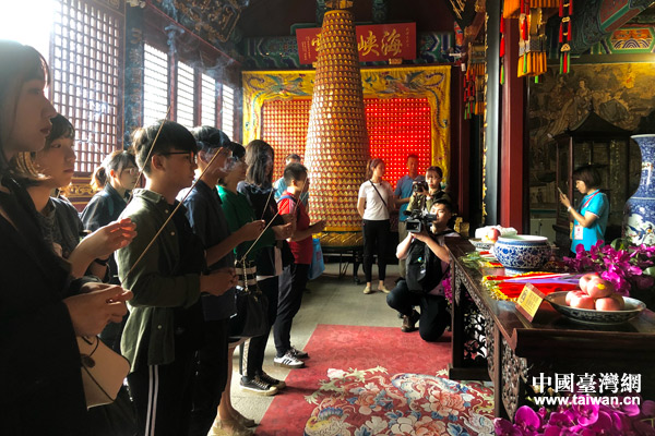台湾学生在天后宫祭拜(中国台湾网 杨旋 摄)