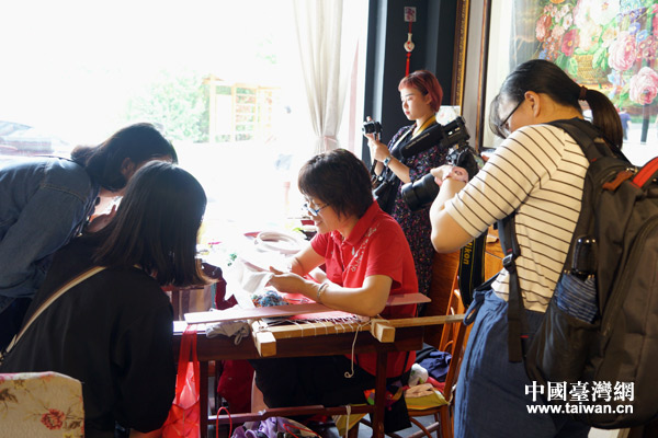 台青听老师讲刺绣(中国台湾网 杨旋 摄)
