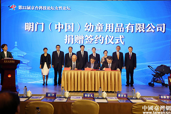 本次论坛由一场高规格的捐赠仪式揭开了序幕。通过女性论坛的平台,台资企业明门(中国)幼童用品有限公司向中国宋庆龄基金会捐赠40集装箱儿童安全用品,向北京妇女儿童发展基金会捐赠60集装箱儿童安全用品。这场特殊的捐赠既体现了京台妇女儿童事业的融合发展,也彰显了“血浓于水,守望相助”的同胞深情。两岸企业家峰会大陆方面理事长郭金龙、副理事长张平,两岸企业家峰会台湾方面理事长萧万长及夫人朱俶贤、副理事长邱正雄、秘书长陈瑞隆,中国宋庆龄基金会副主席井顿泉、北京市委常委齐静、明门(中国)幼童用品有限公司董事长郑钦明等领导和嘉宾出席并见证了捐赠仪式。北京市妇联主席张雅君主持捐赠仪式。