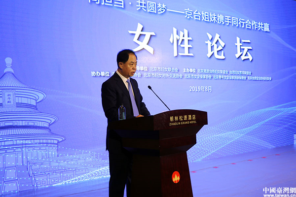 捐赠仪式后,京台科技论坛女性论坛开幕。开幕式上,北京市妇联主席张雅君祝贺论坛再次在京召开。她表示,本次论坛围绕“同担当·共圆梦”的交流主题,各位新老朋友相聚于此,共谋发展愿景,共述亲情友情,共创事业辉煌,一定会进一步扩大京台妇女的交往交流,进一步推动两地妇女携手发展、共同进步,也一定会进一步促进两岸妇女同胞的情感融合与心灵契合。京台两地姐妹要继续秉持“两岸一家亲”的理念,携手推动两岸关系融合发展;要充分利用两岸妇女交流平台,继续深化交流合作;要不断创新交流载体,推动两地妇女交流规范化和机制化,组织动员更多的妇女姐妹参与到两岸关系和平发展的历史潮流中。