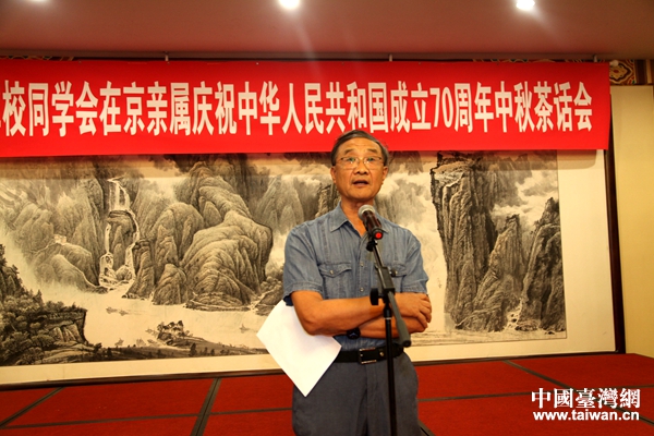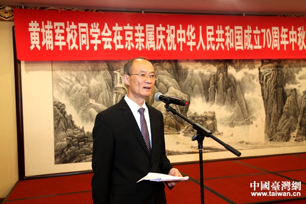 中国台湾网9月12日讯 黄埔军校同学会于今日(12日)在京举办理事、亲属庆祝新中国成立70周年中秋茶话会,黄埔军校同学会会长林上元出席并讲话,徐小岩、刘凡、陈知庶、罗箭、汪纪戎、郭庶英、王晓玉等两岸及香港黄埔理事、亲属近百人参加了活动。